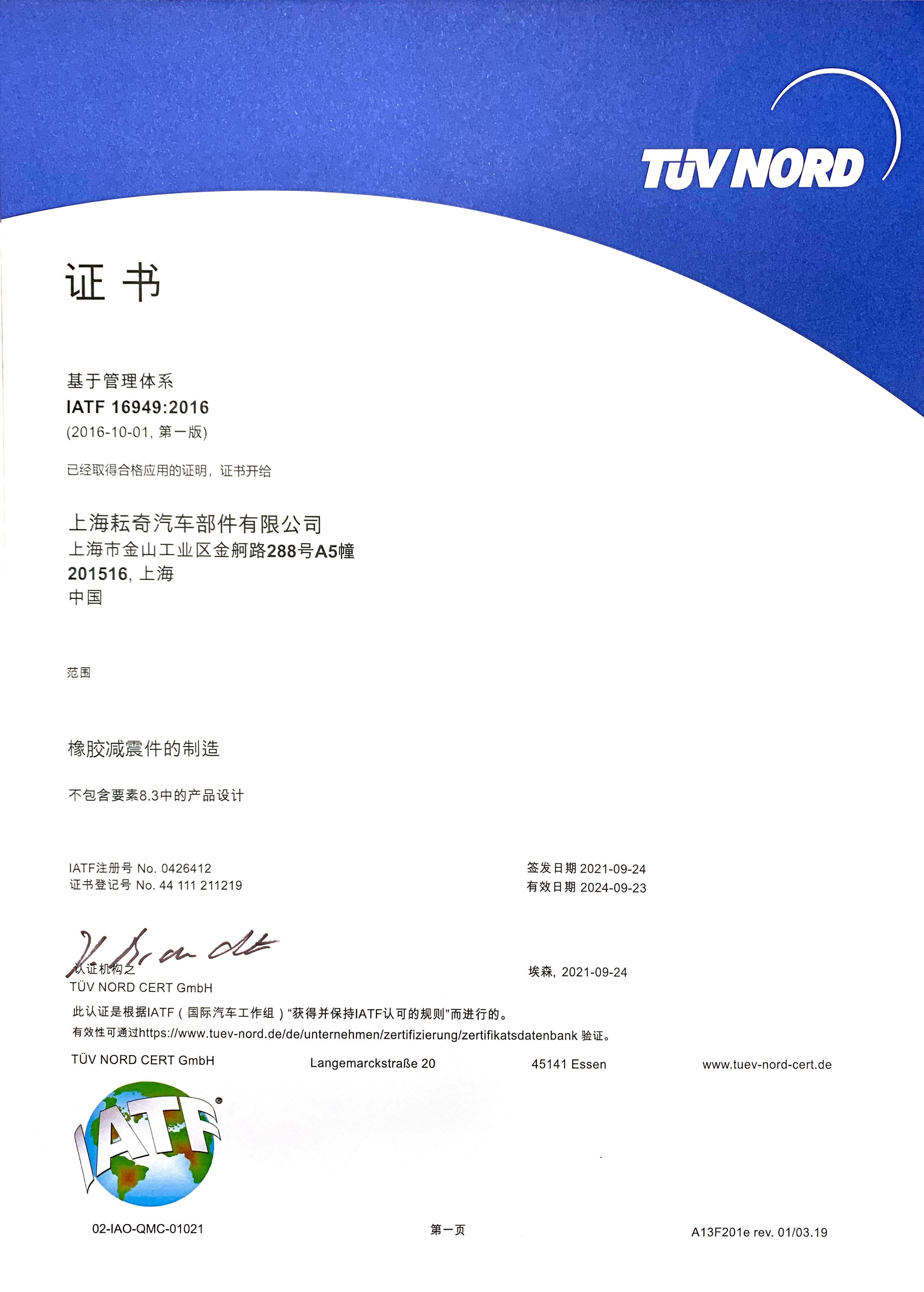 上海耘奇汽车部件有限公司2014年成立于上海,是开发橡胶减振技术的科技公司。